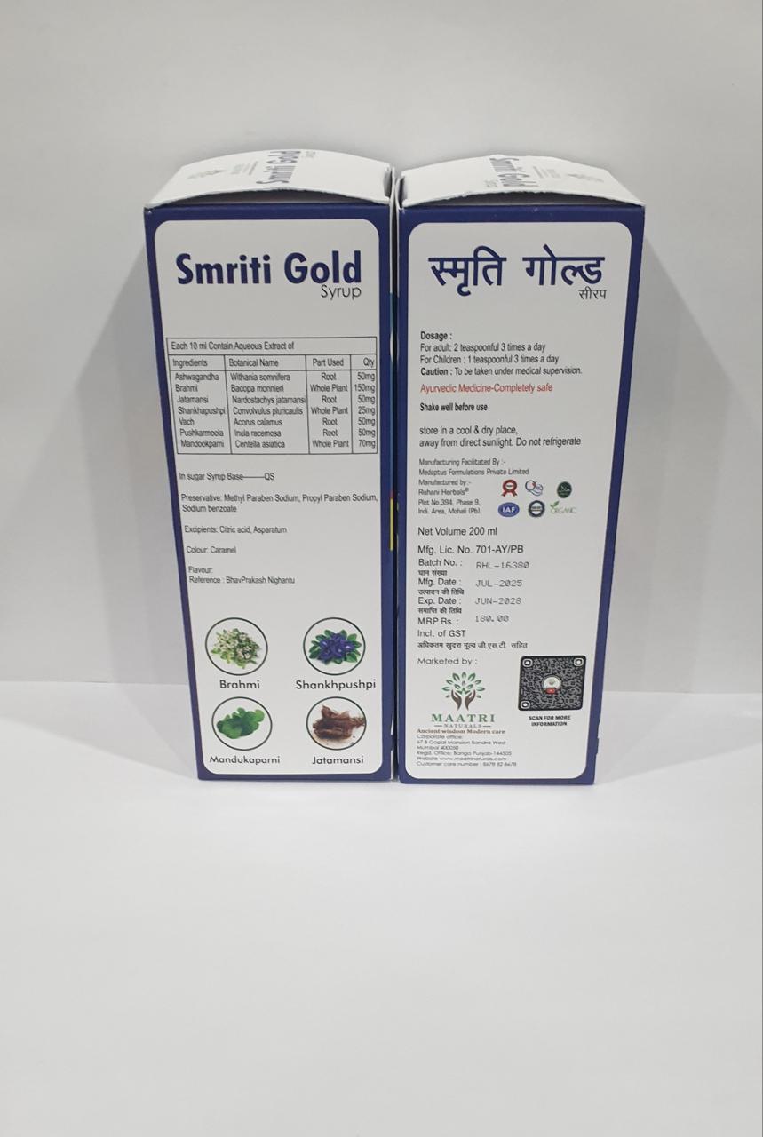 Formulated as a gentle yet effective brain syrup, Smriti Gold helps improve concentration, mental clarity, and learning ability while supporting stress management and emotional balance. As a trusted brain tonic in Ayurveda, it works holistically to strengthen brain function, support alertness, and reduce mental fatigue caused by a fast-paced lifestyle.